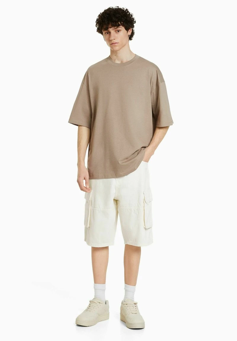 BERSHKA BAGGY CARGO – Shorts – Beige