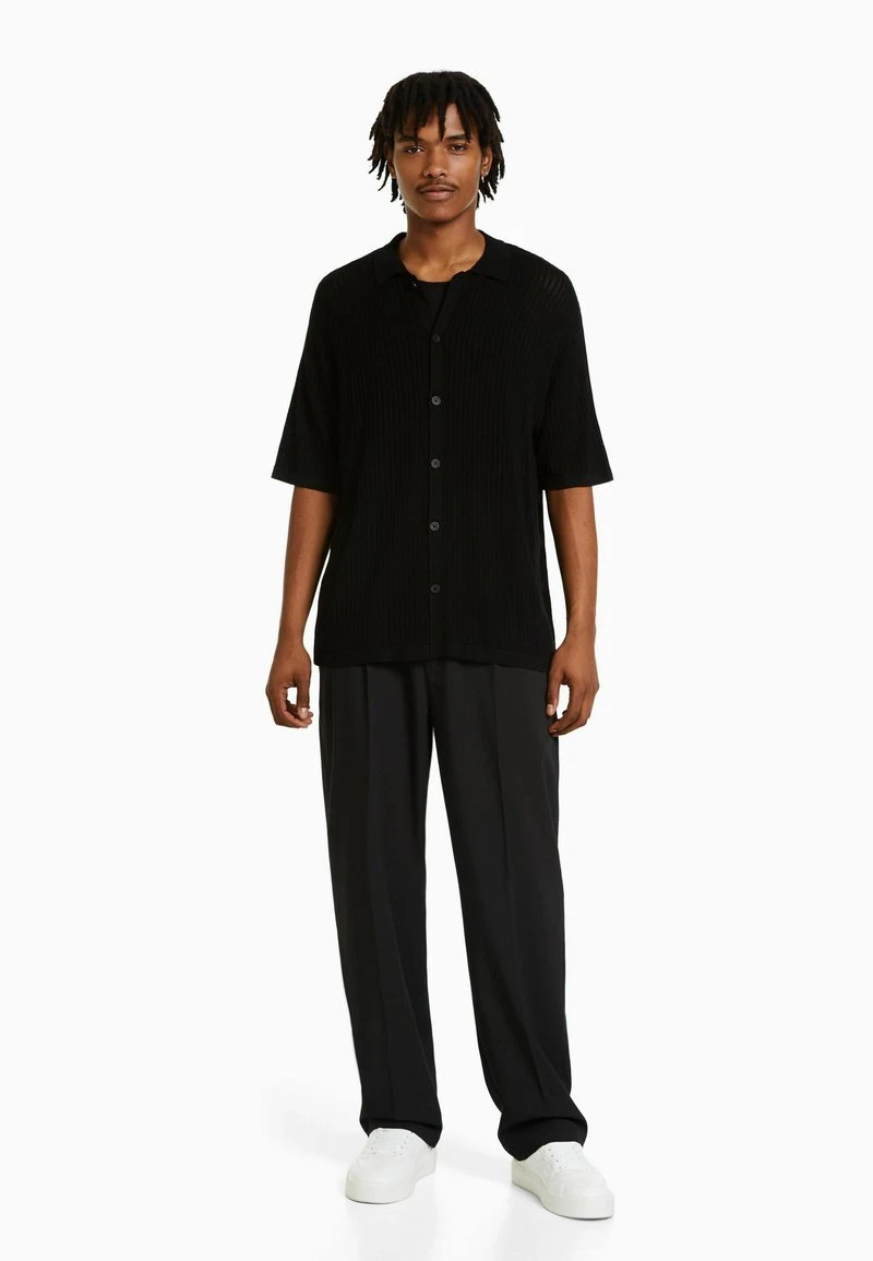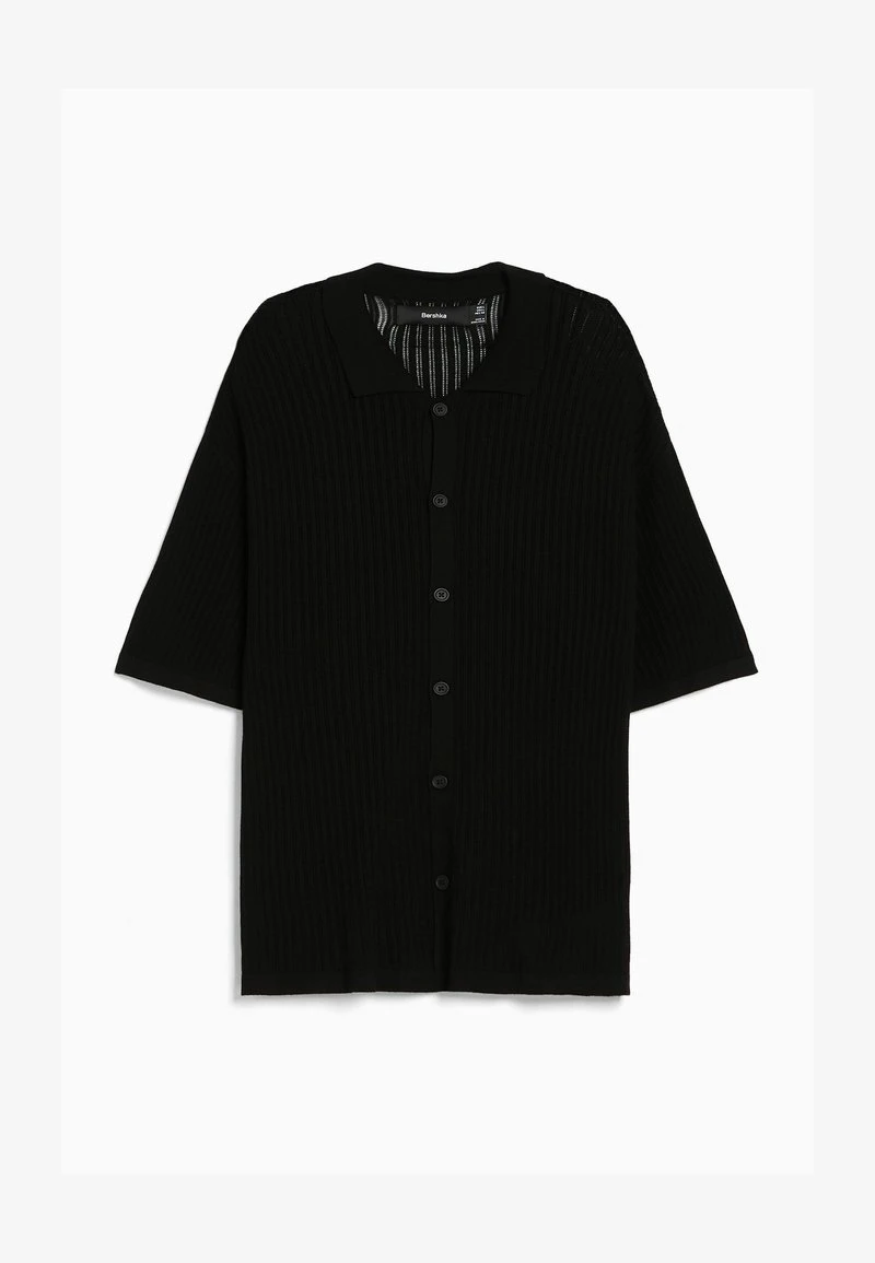 BERSHKA BASIC SHORT SLEEVE – Strickjacke – Black