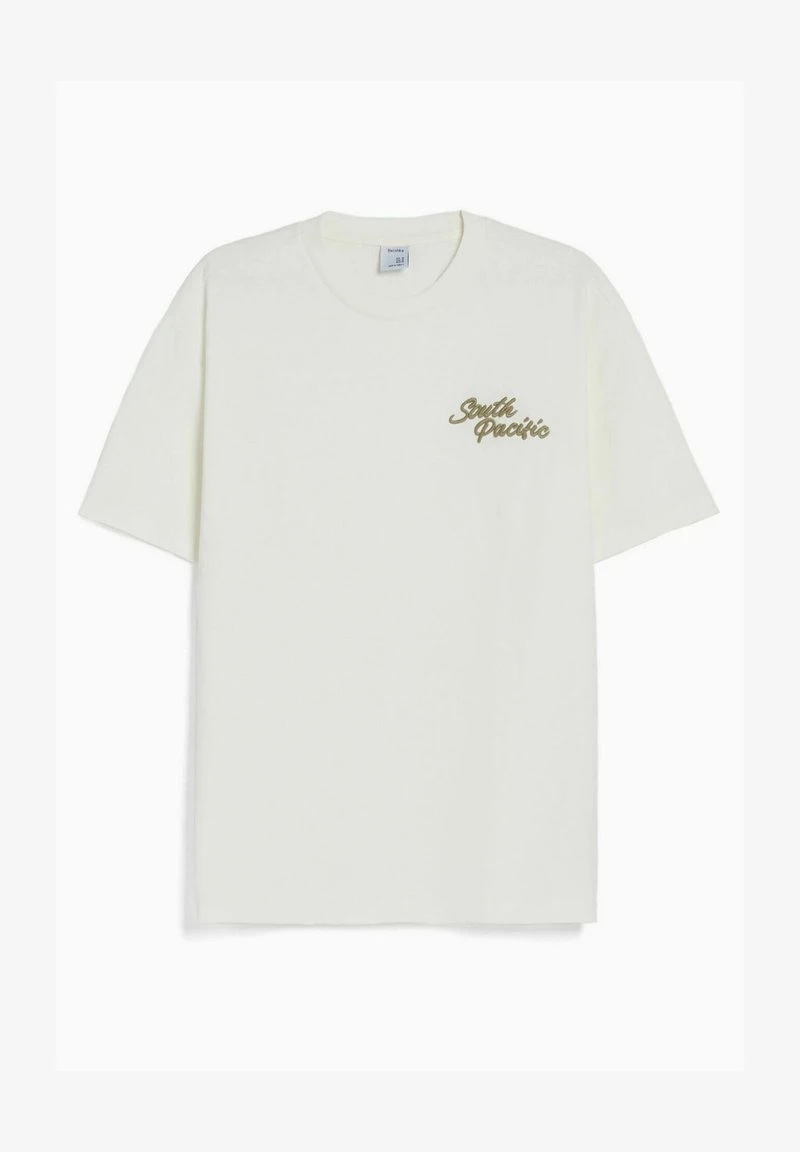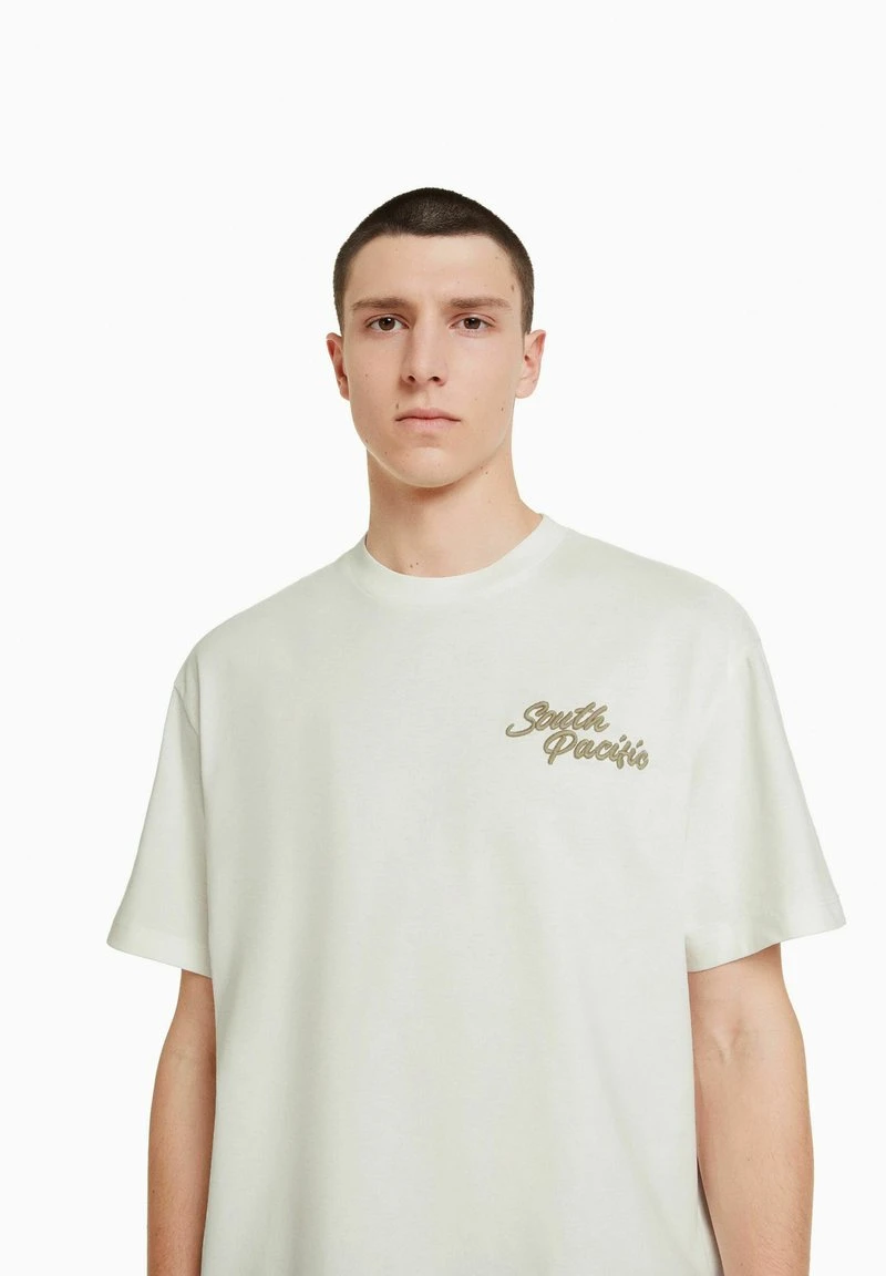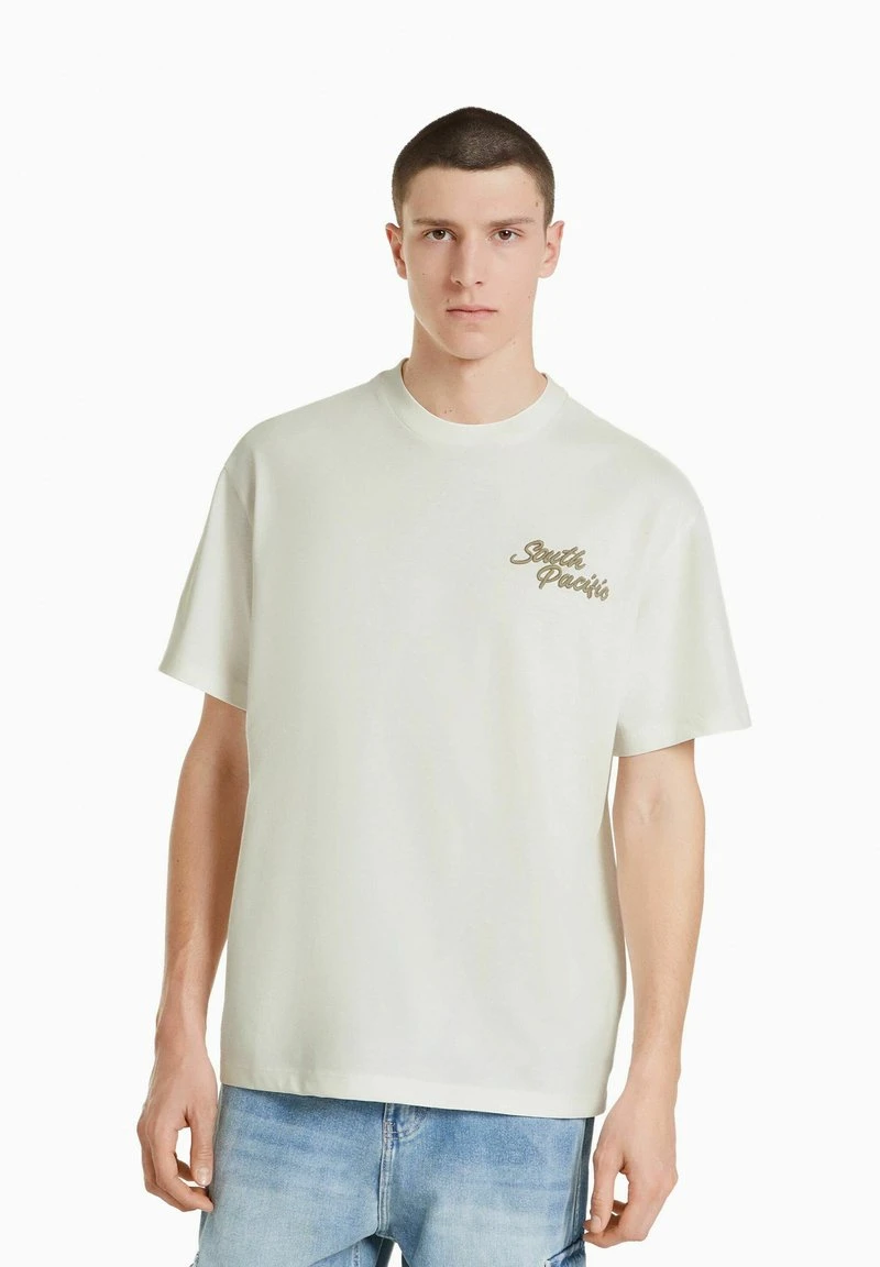 BERSHKA BOXY SHORT SLEEVE EMBROIDERY – T-Shirt Print – Off-white
