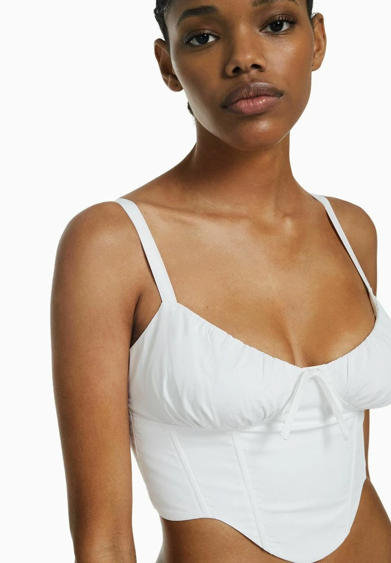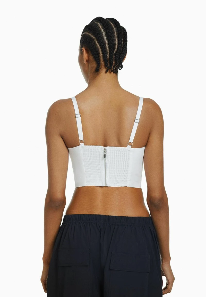 BERSHKA CROPPED WITH STRAPS – CORSET – Top – Off White