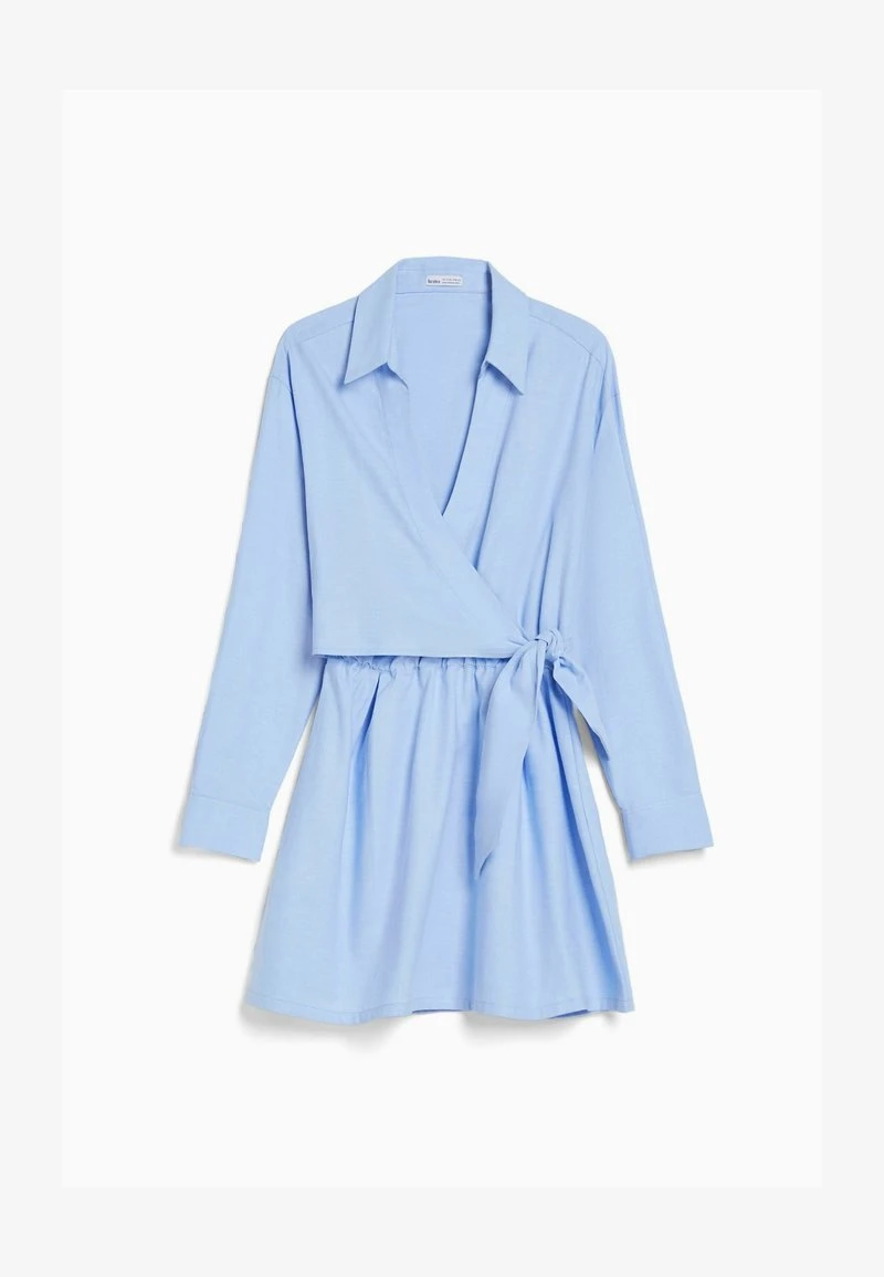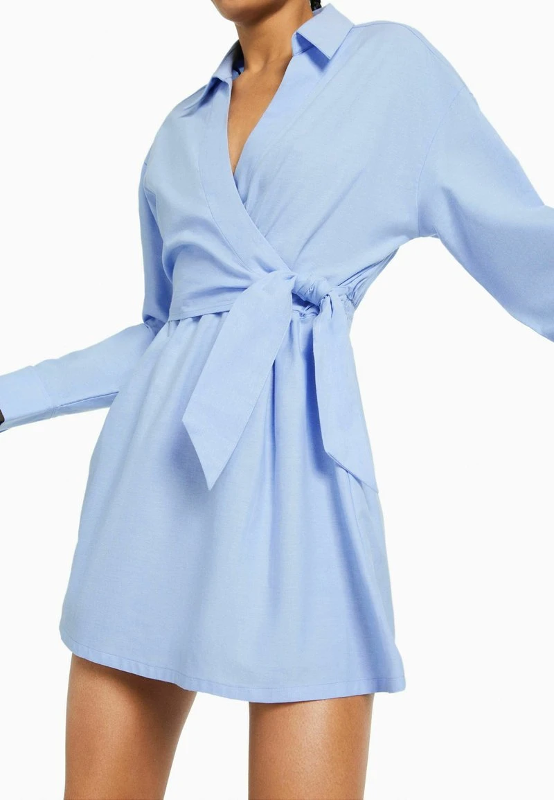 BERSHKA CROSSOVER DETAIL- MINI LONG SLEEVE – Blusenkleid – Light Blue