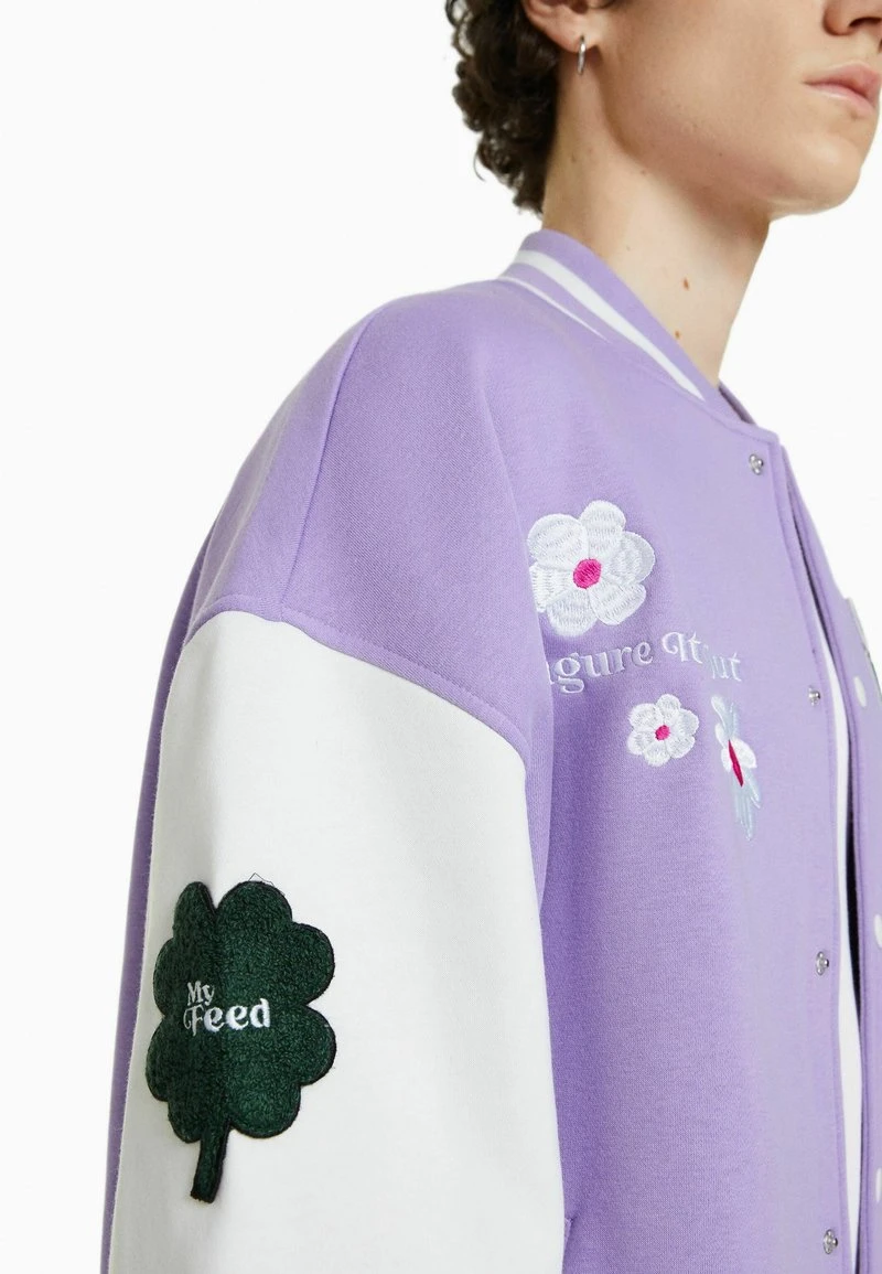 BERSHKA EMBROIDERED FLORAL – Bomberjacke – Mottled Purple