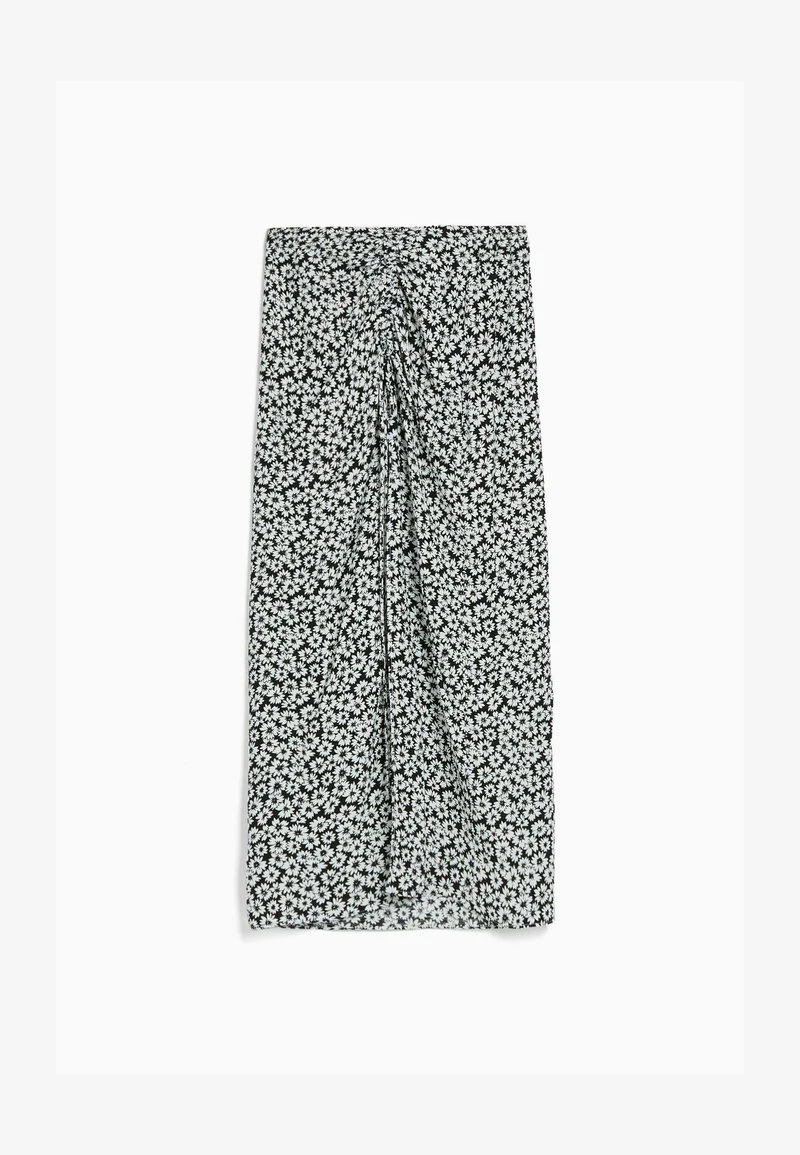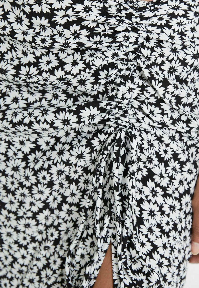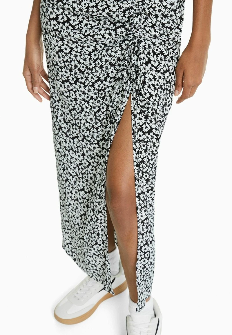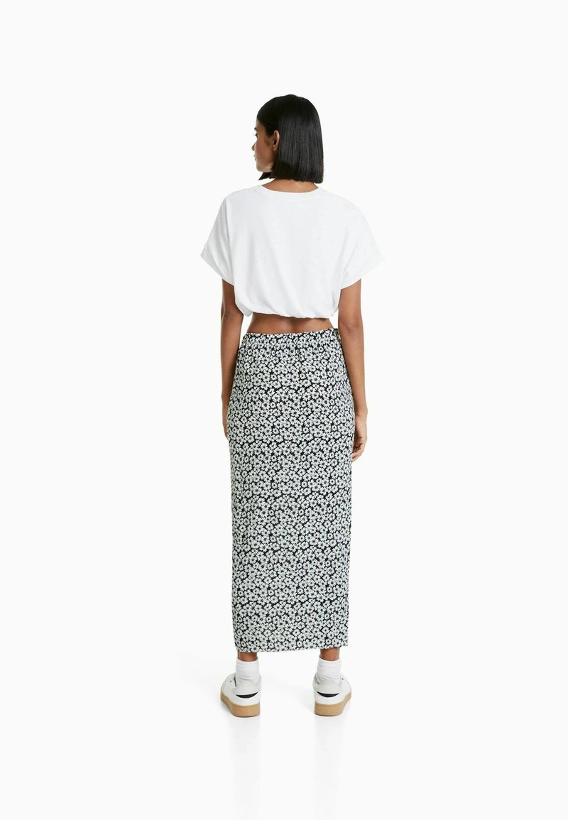 BERSHKA FLORAL PRINT – Maxirock – Black