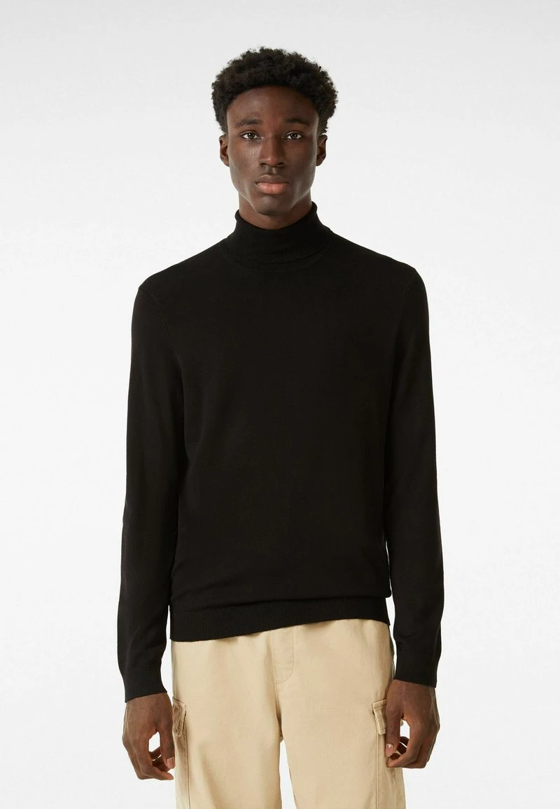 BERSHKA HIGH NECK – Strickpullover – Black