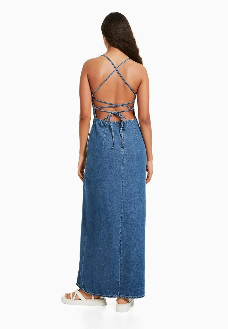 BERSHKA LONG OPEN BACK – Maxikleid – Light Blue Denim