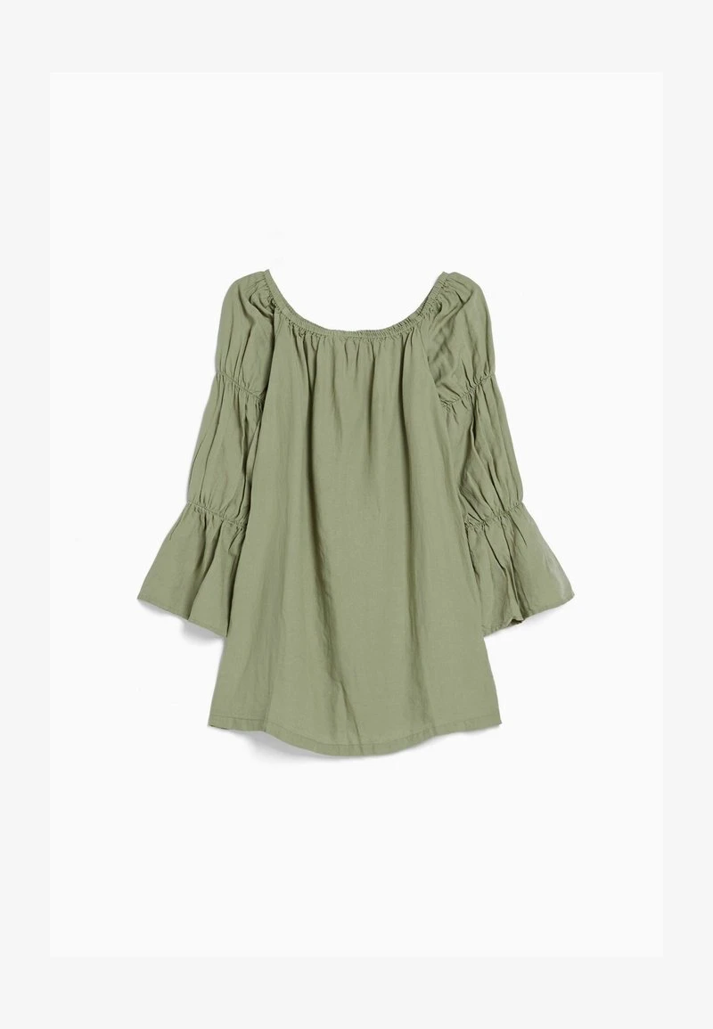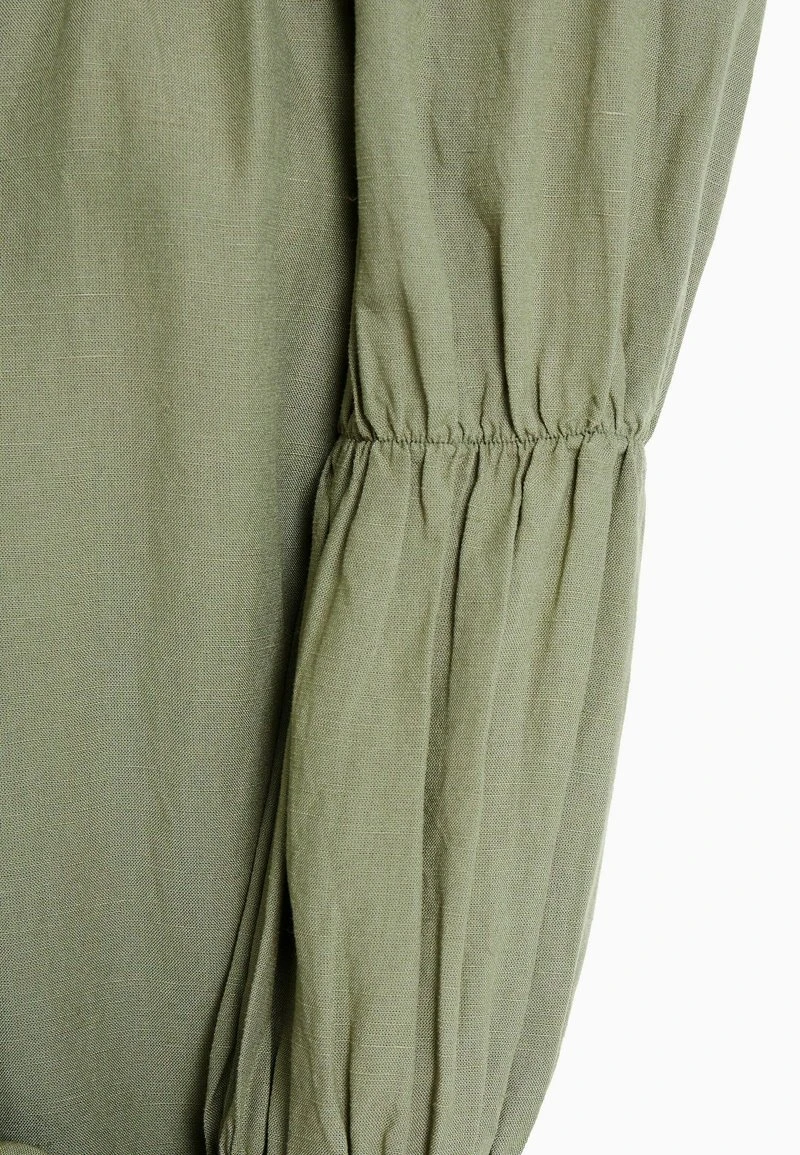 BERSHKA LONG SLEEVE GATHERED MINI – Freizeitkleid – Khaki