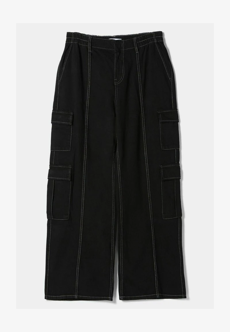 BERSHKA MULTIPOCKET CARGO JEANS – Flared Jeans – Black