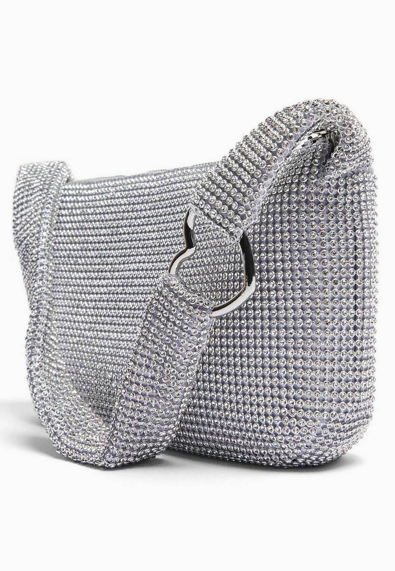 BERSHKA RHINESTONE – Handtasche – Silver Coloured