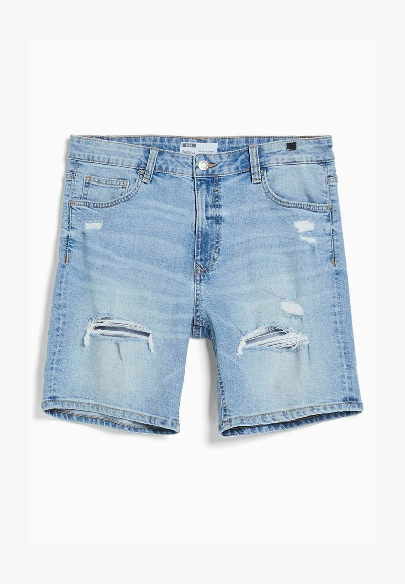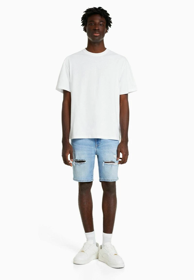 BERSHKA RIPPED – BERMUDA – Jeans Shorts – Light Blue Denim