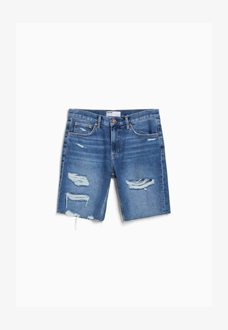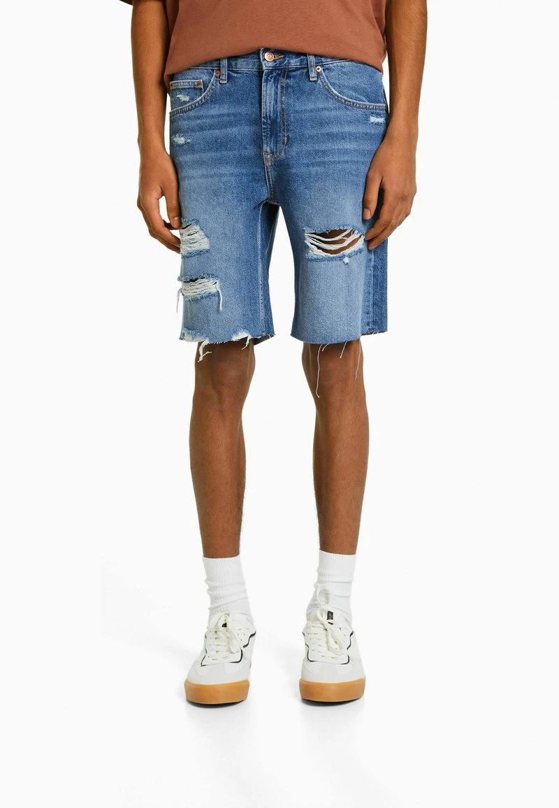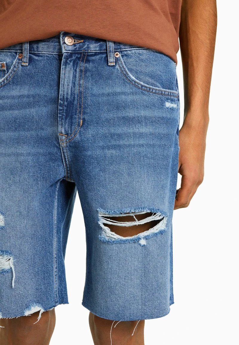 BERSHKA RIPPED – Jeans Shorts – Dark Blue