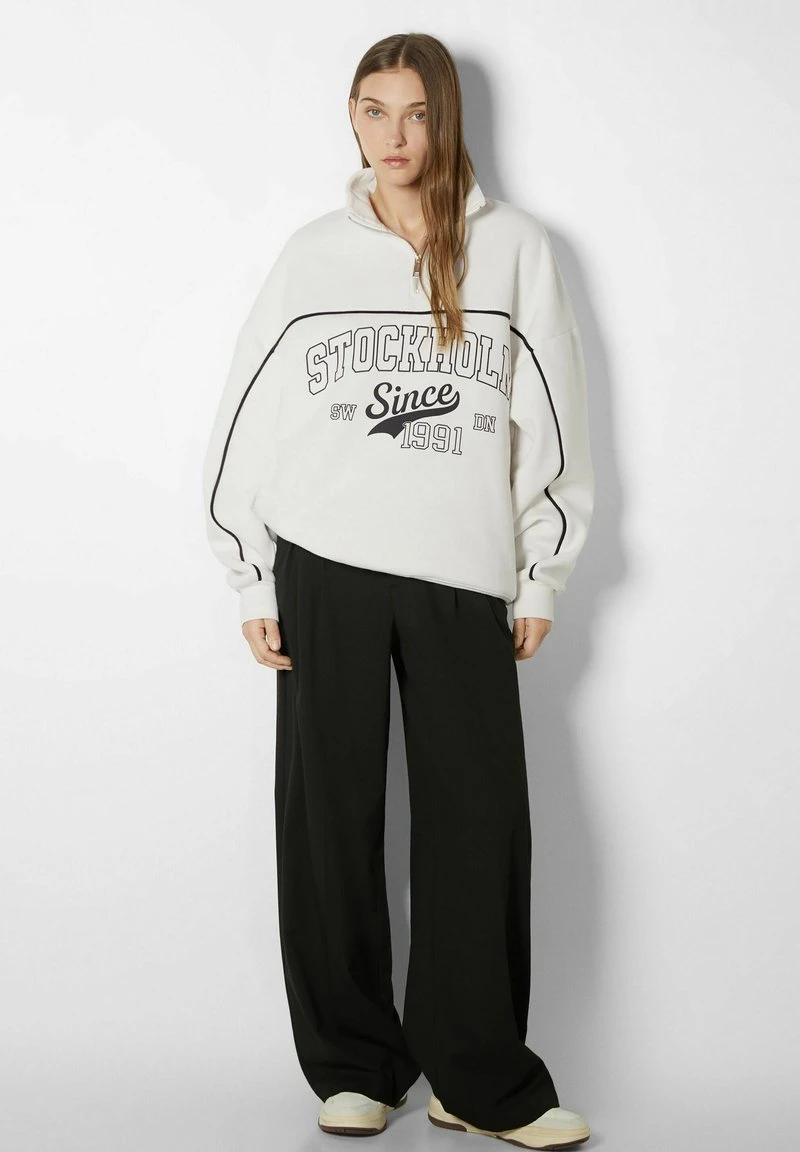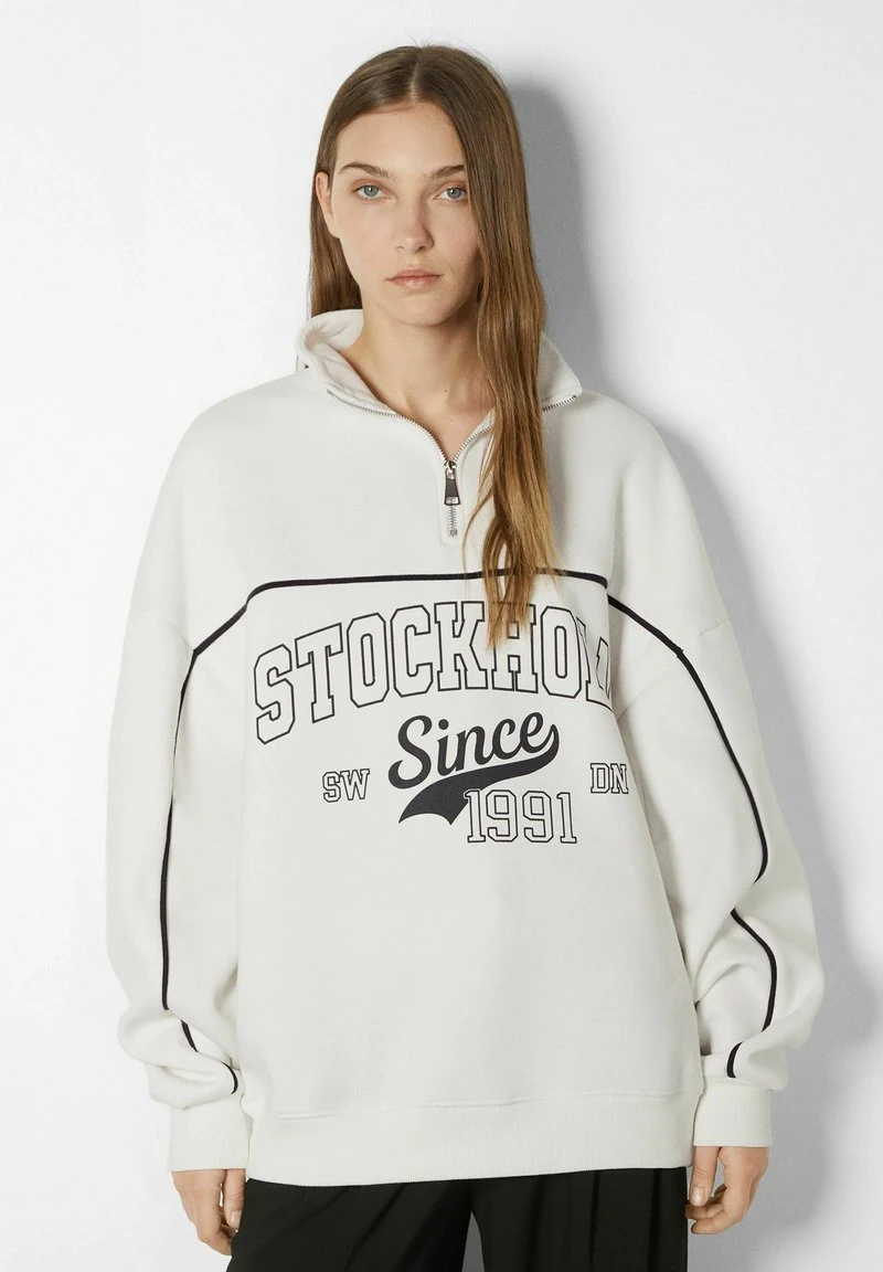 BERSHKA SAN DIEGO PRINT HALF ZIP – Sweatshirt – White