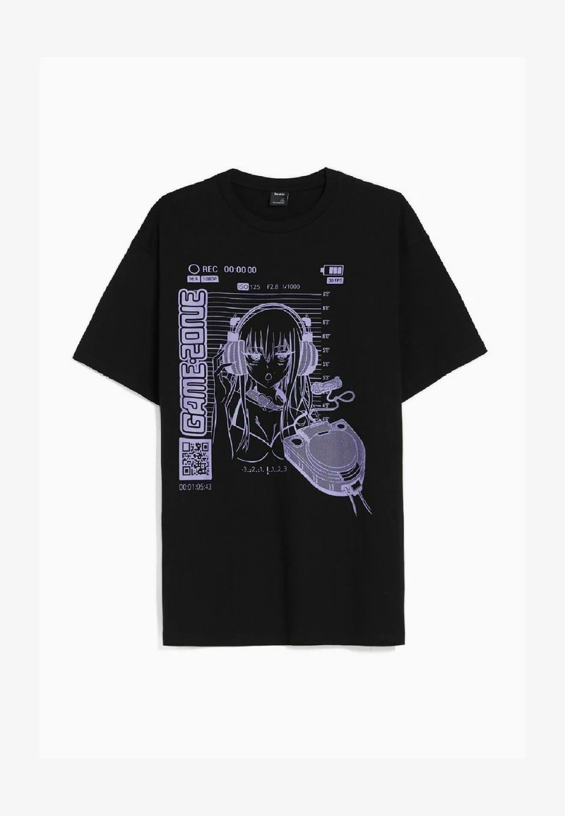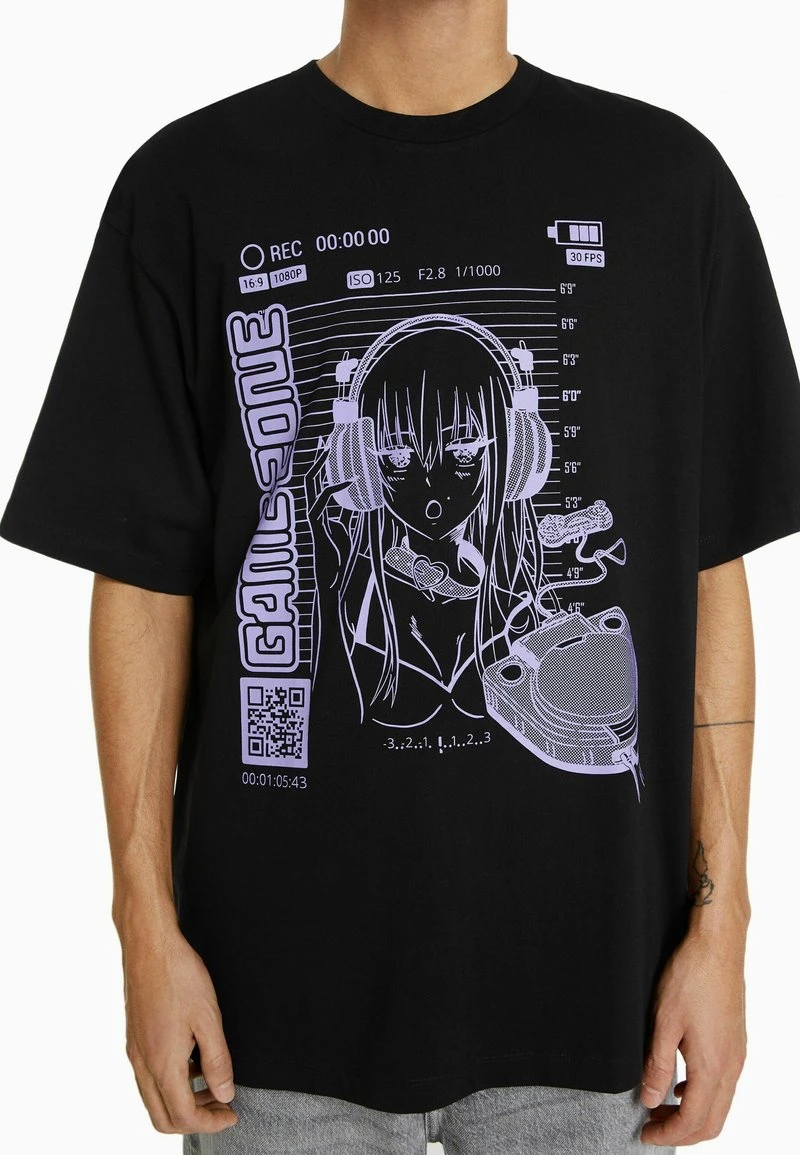 BERSHKA SHORT SLEEVE BOXY 90S ANIME – T-Shirt Print – Black