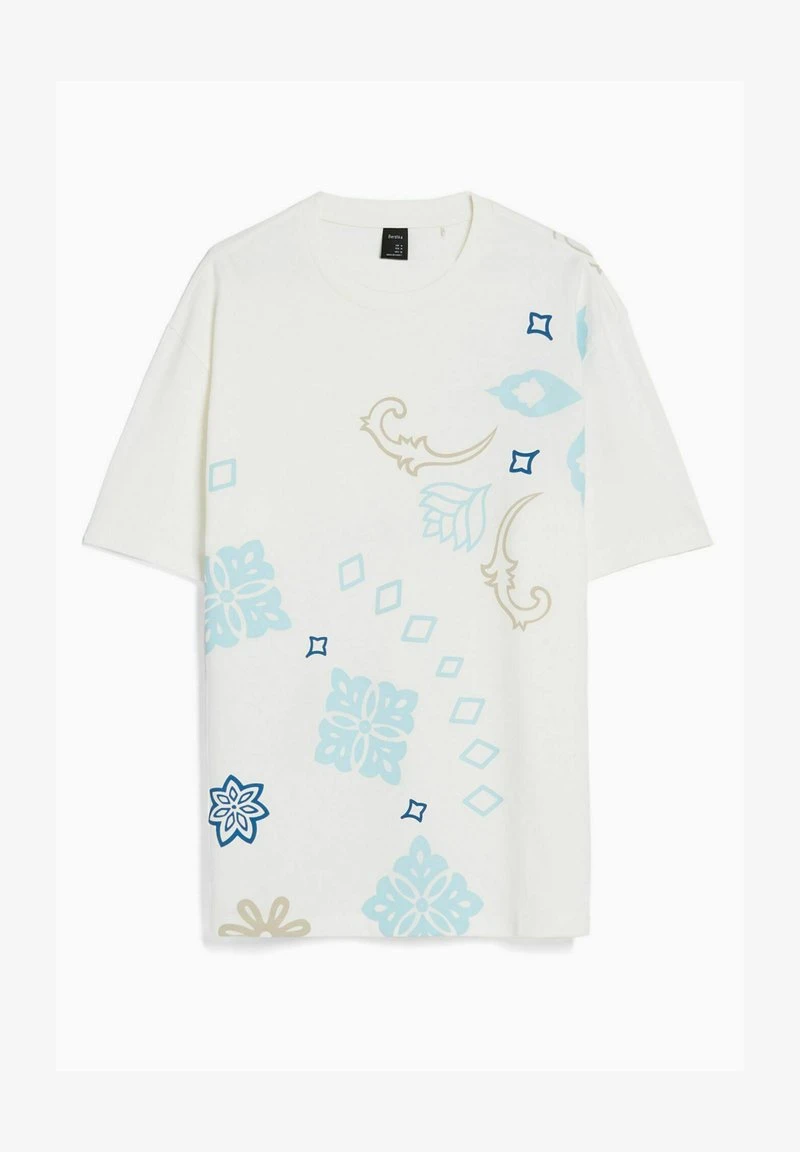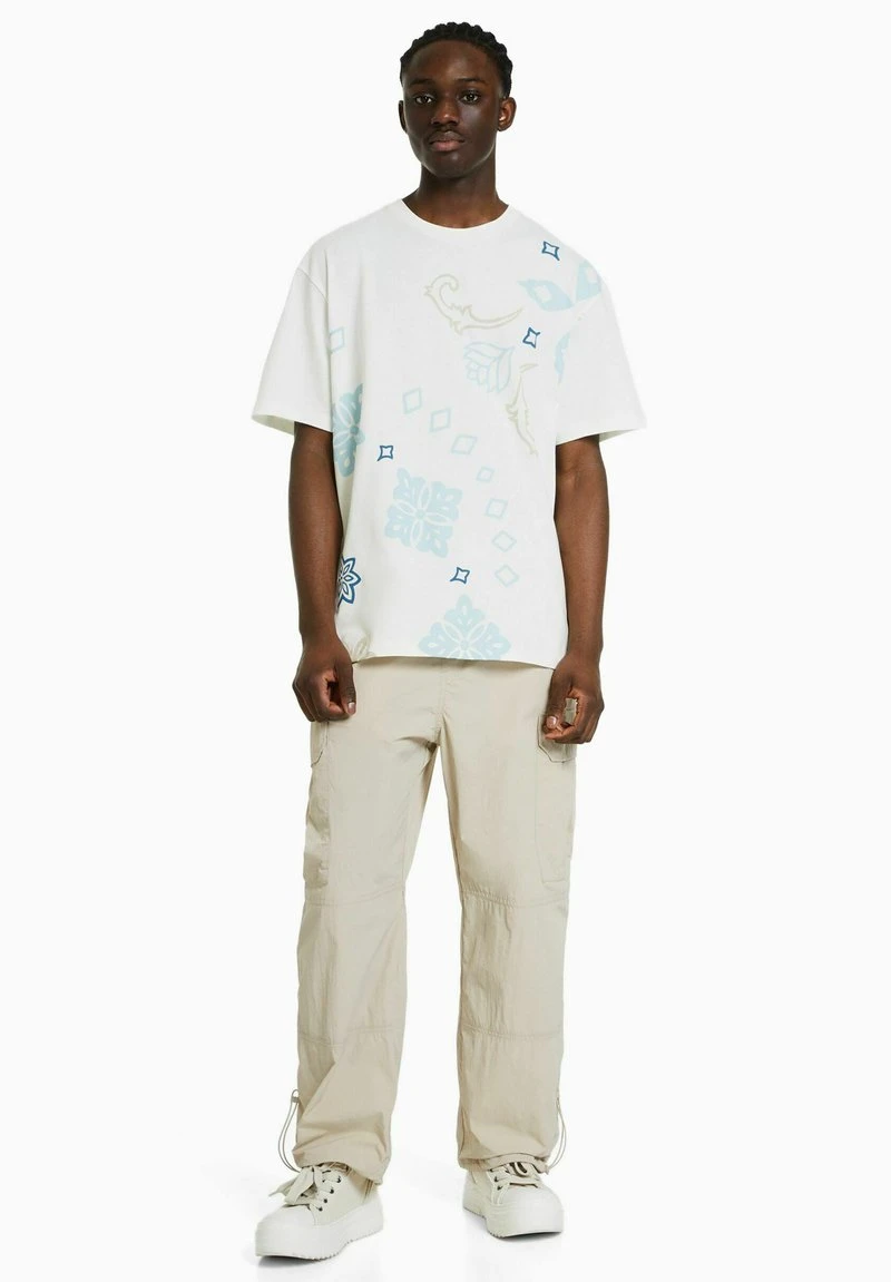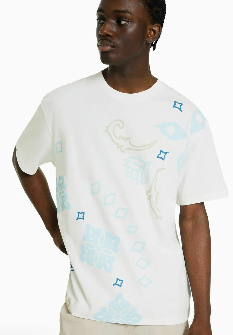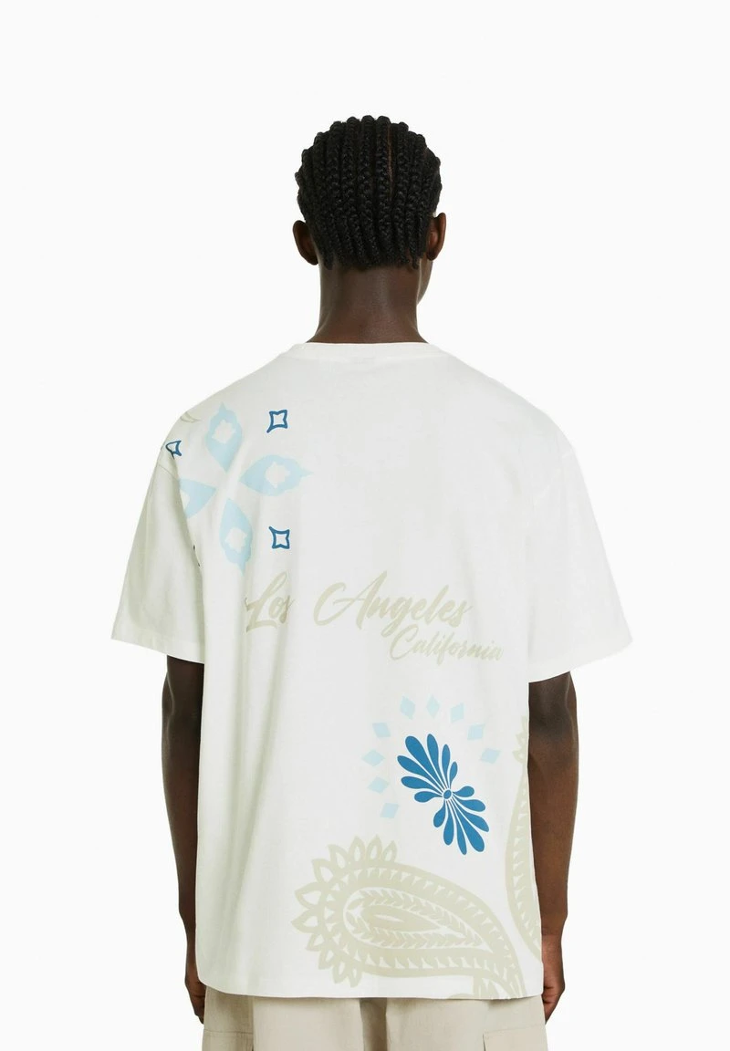 BERSHKA SHORT SLEEVE BOXY – T-Shirt Print – White