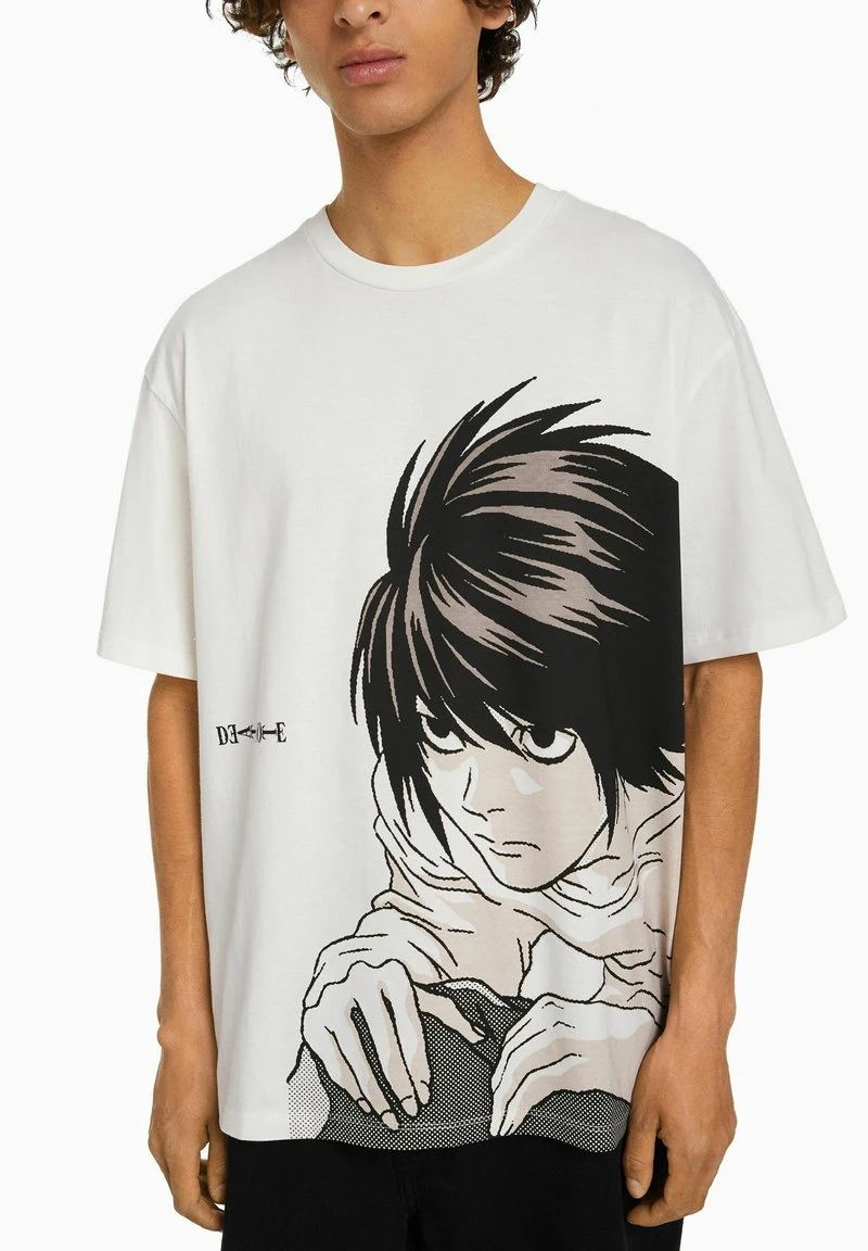 BERSHKA SHORT SLEEVE DEATH NOTE – T-Shirt Print – White