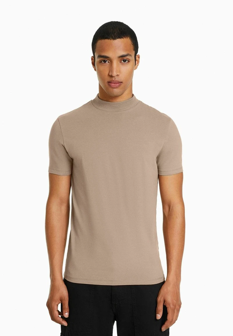 BERSHKA SHORT SLEEVE MOCK NECK – T-Shirt Basic – Brown