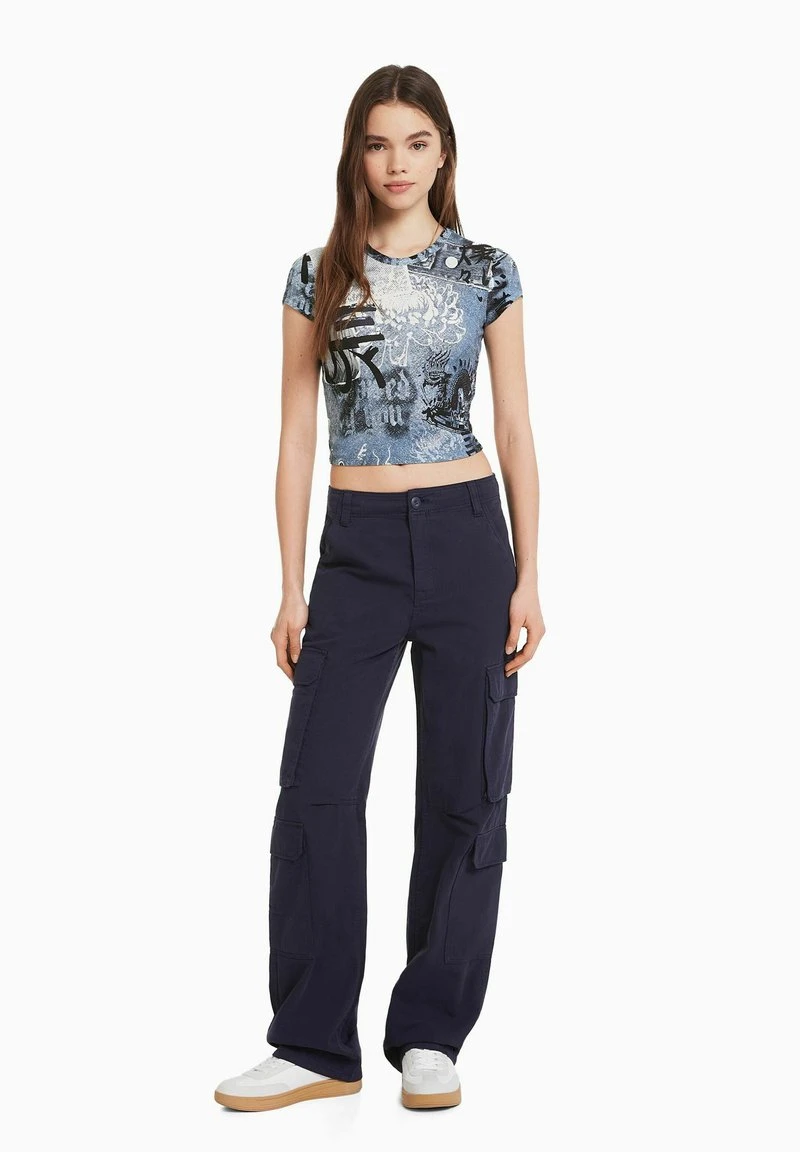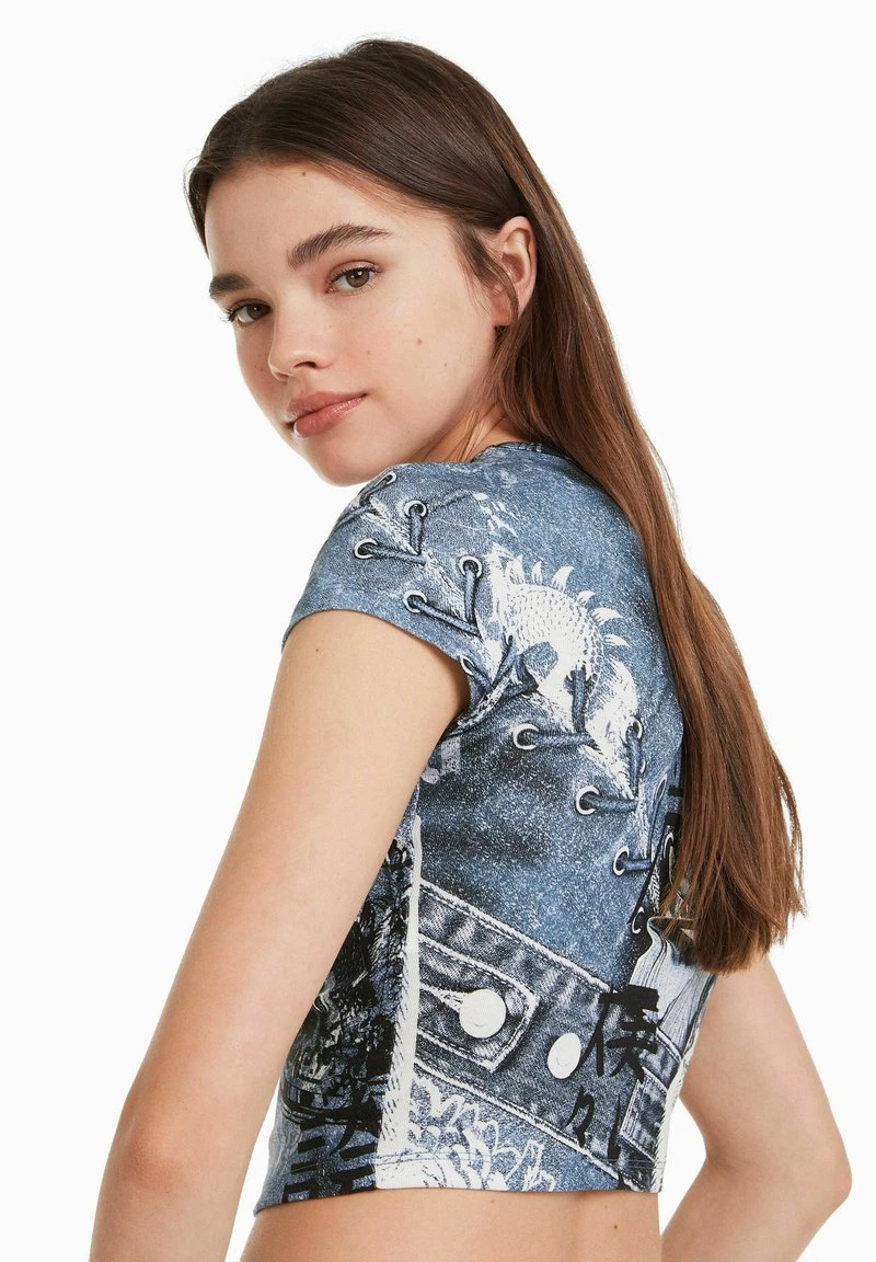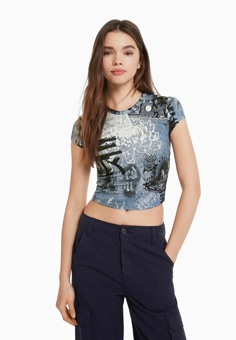 BERSHKA SHORT SLEEVE – T-Shirt Print – Blue