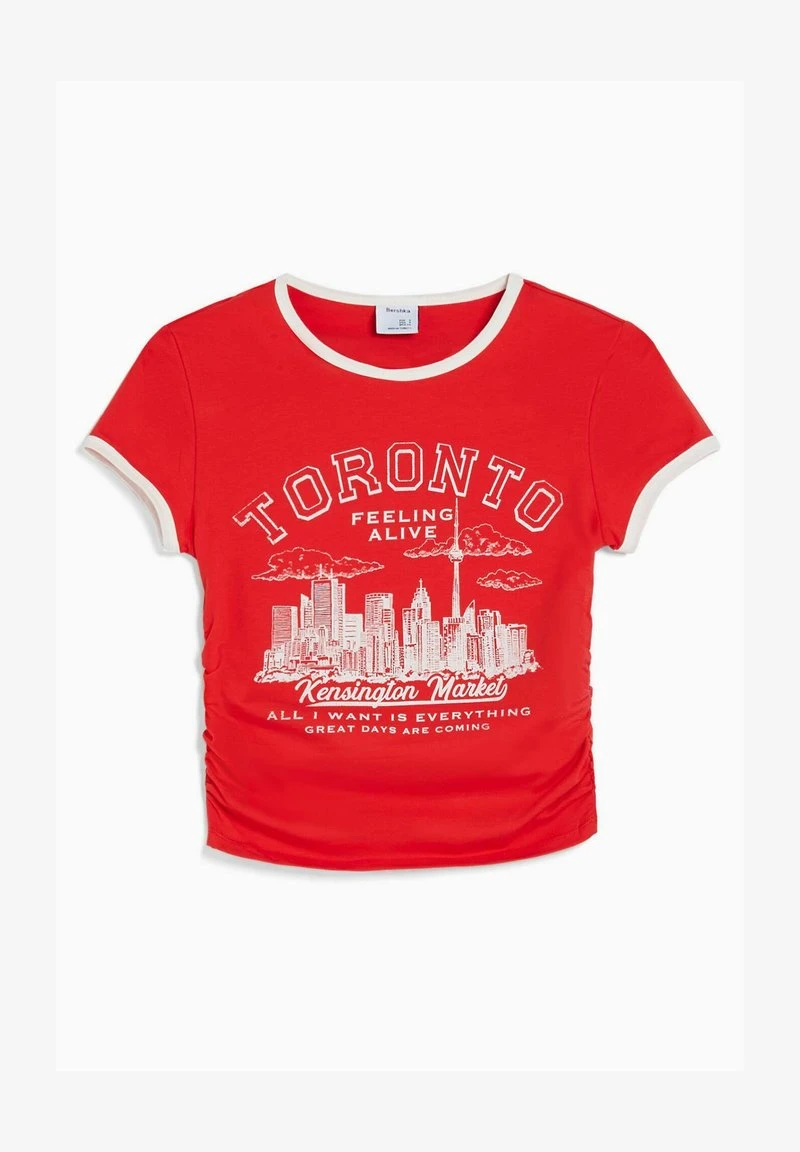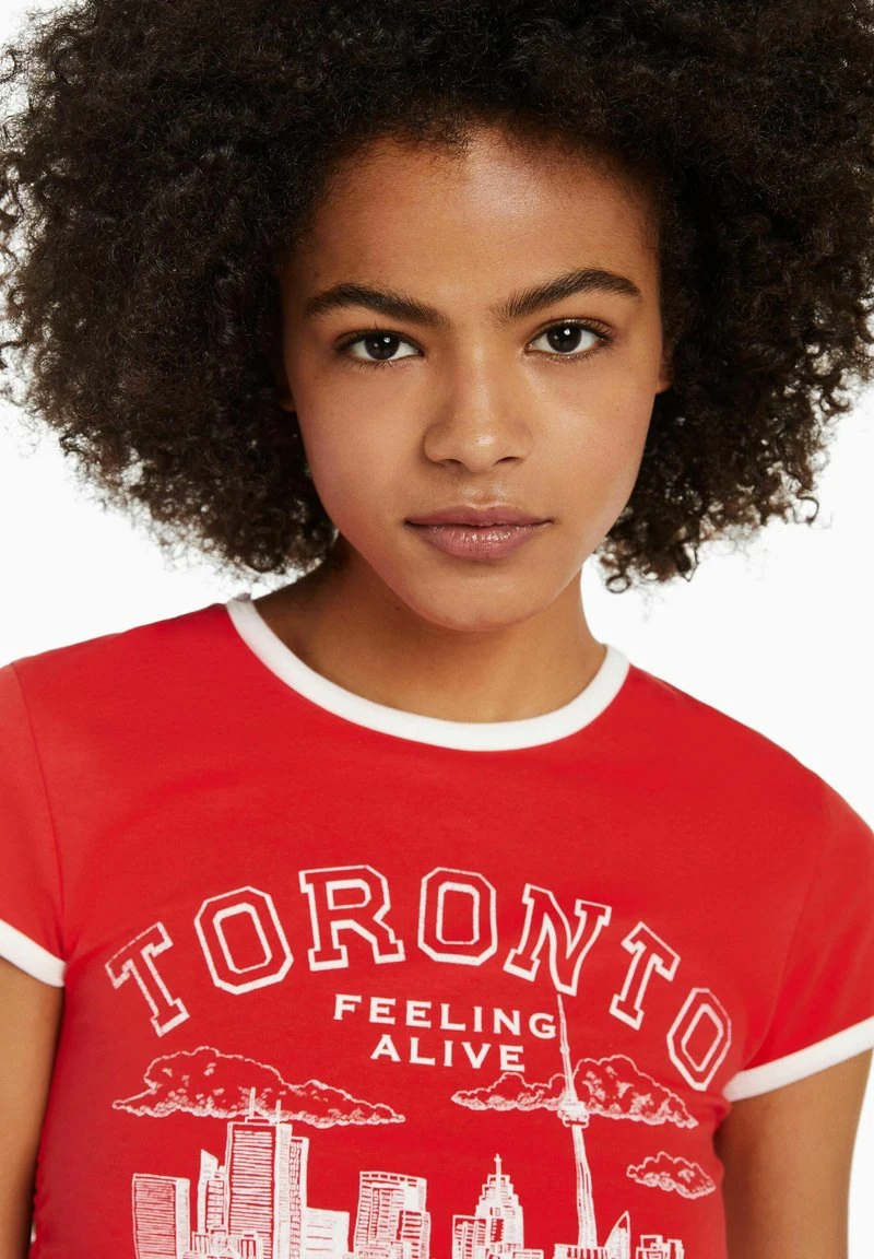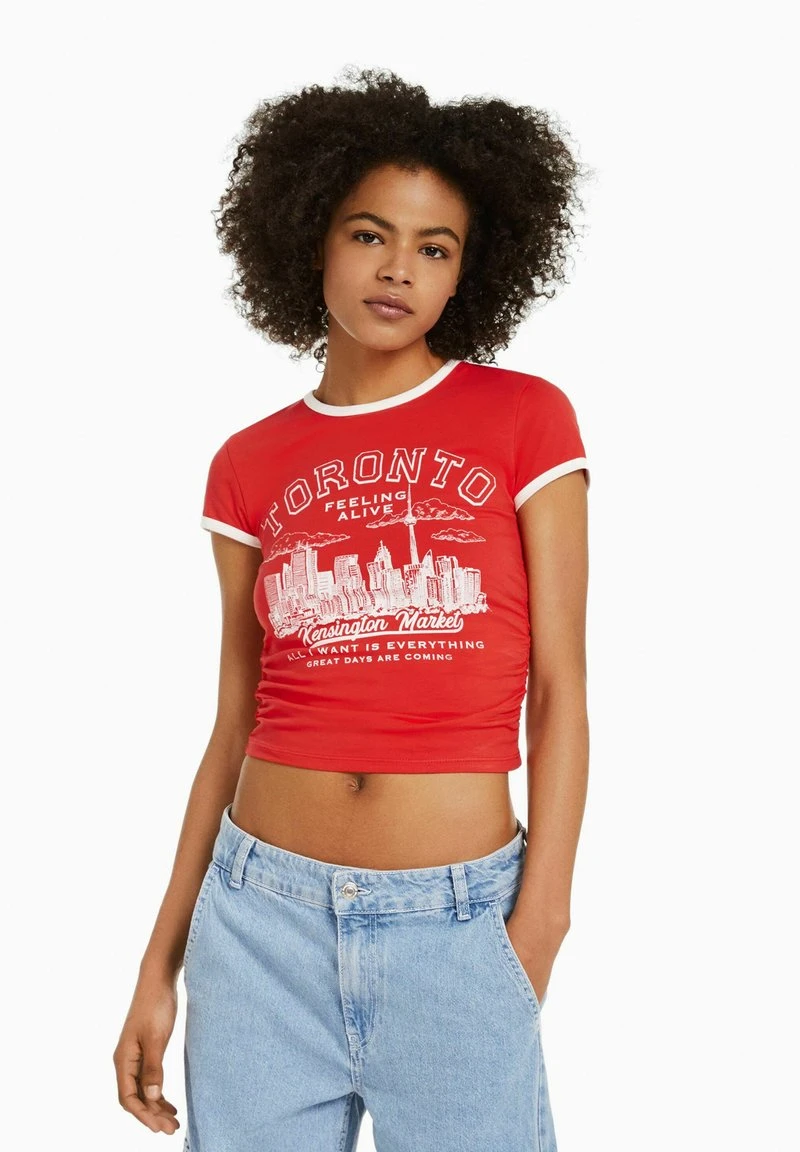 BERSHKA SHORT SLEEVE – T-Shirt Print – Red