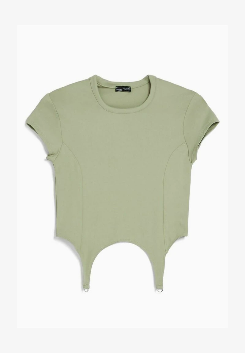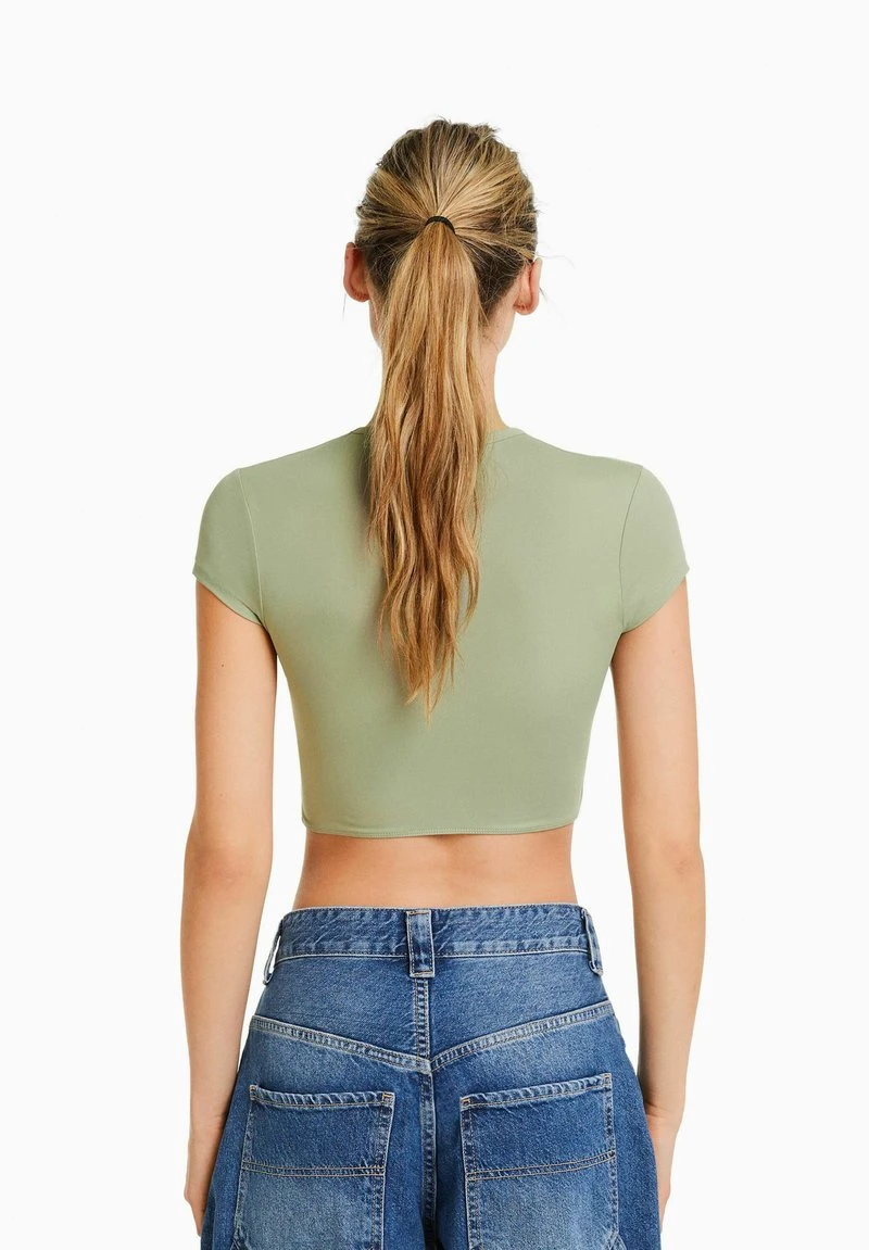 BERSHKA SHORT SLEEVE WITH DETAIL – T-Shirt Print – Khaki