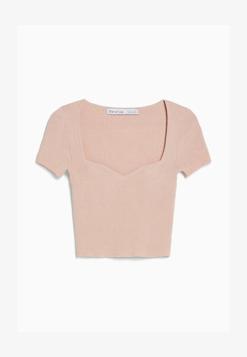 BERSHKA SHORT SLEEVE WITH SWEETHEART – T-Shirt Basic – Pink