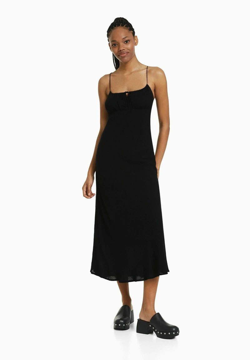 BERSHKA STRAPPY CREPE – Freizeitkleid – Black