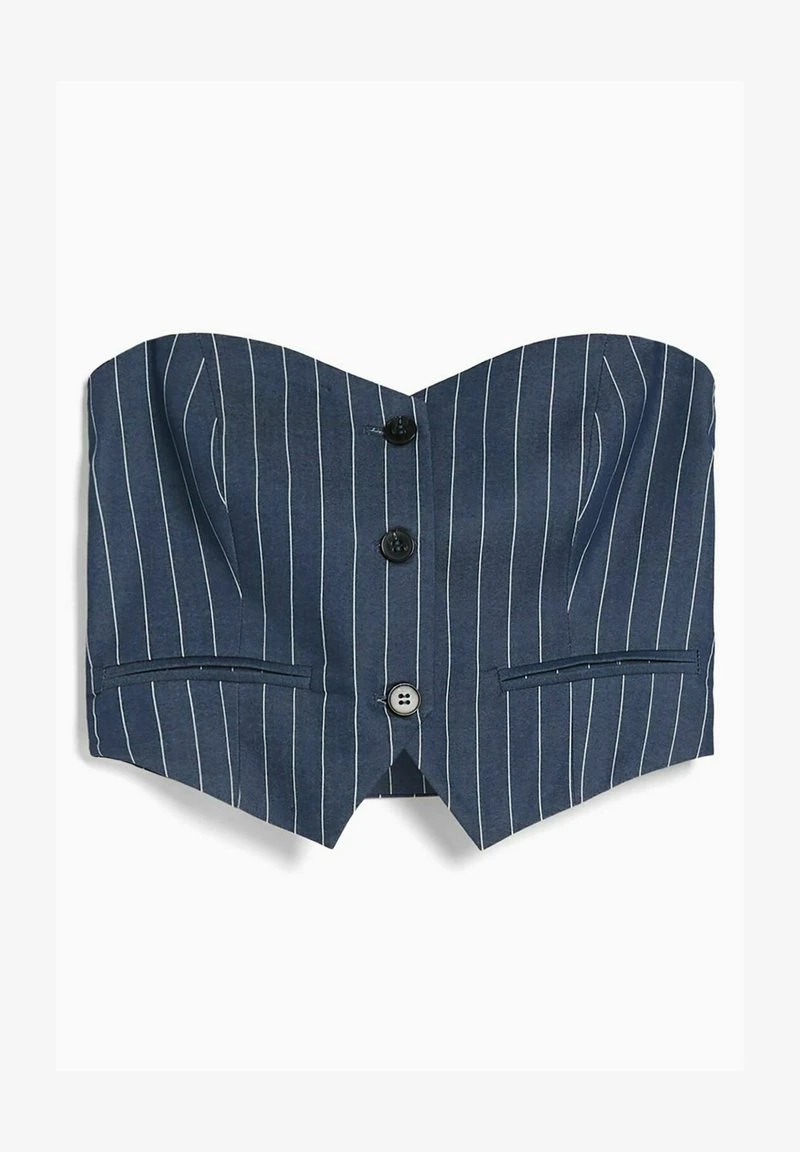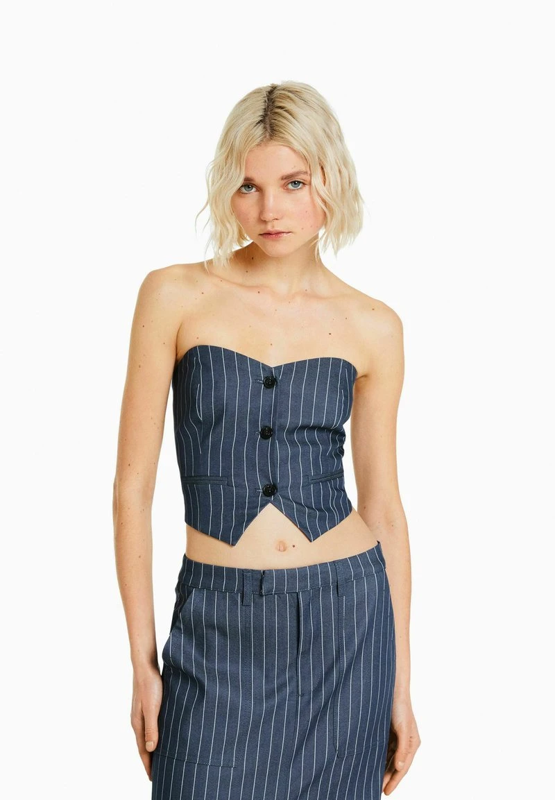 BERSHKA TAILORED PINSTRIPE EXPOSED SHOULDERS – Top – Dark Blue