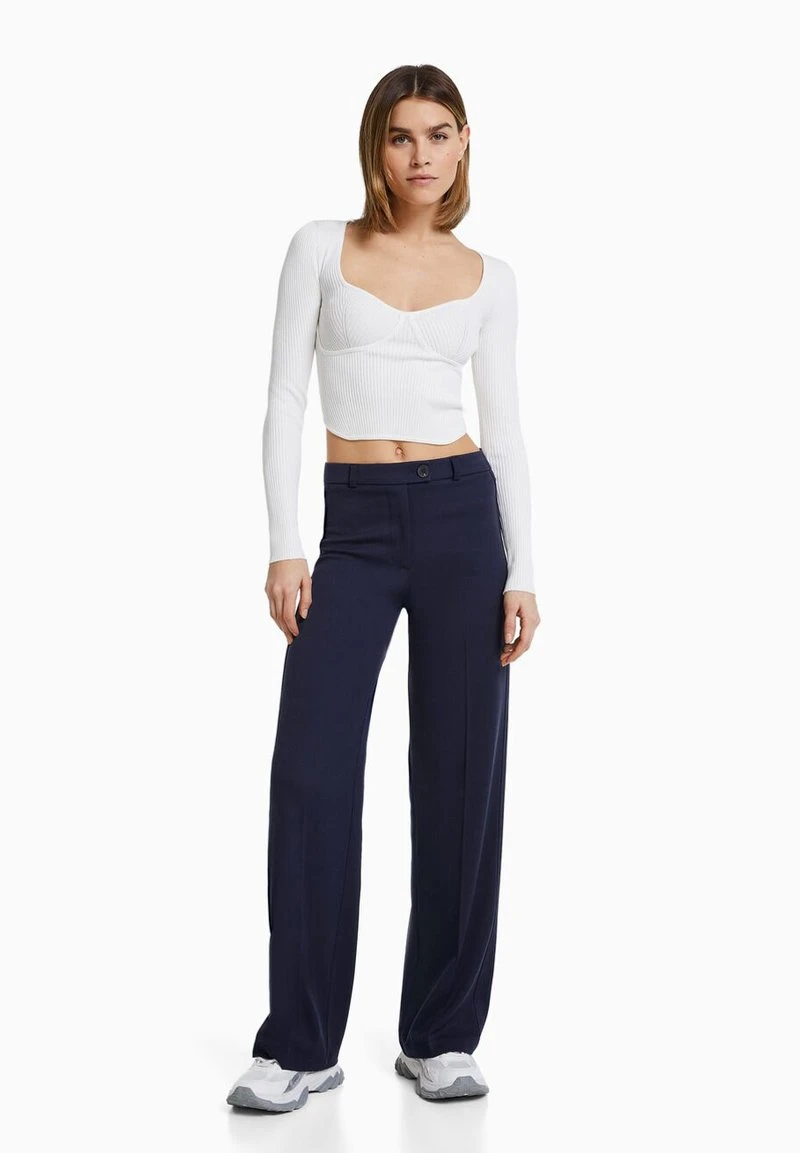 BERSHKA WIDE LEG TAILORED – Stoffhose – Royal Blue