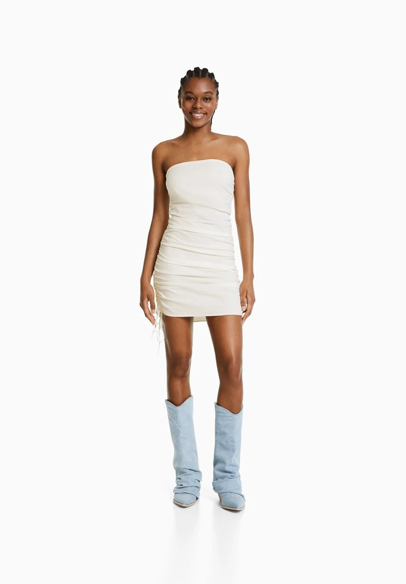 BERSHKA WITH GATHERED SIDE – Freizeitkleid – Offwhite