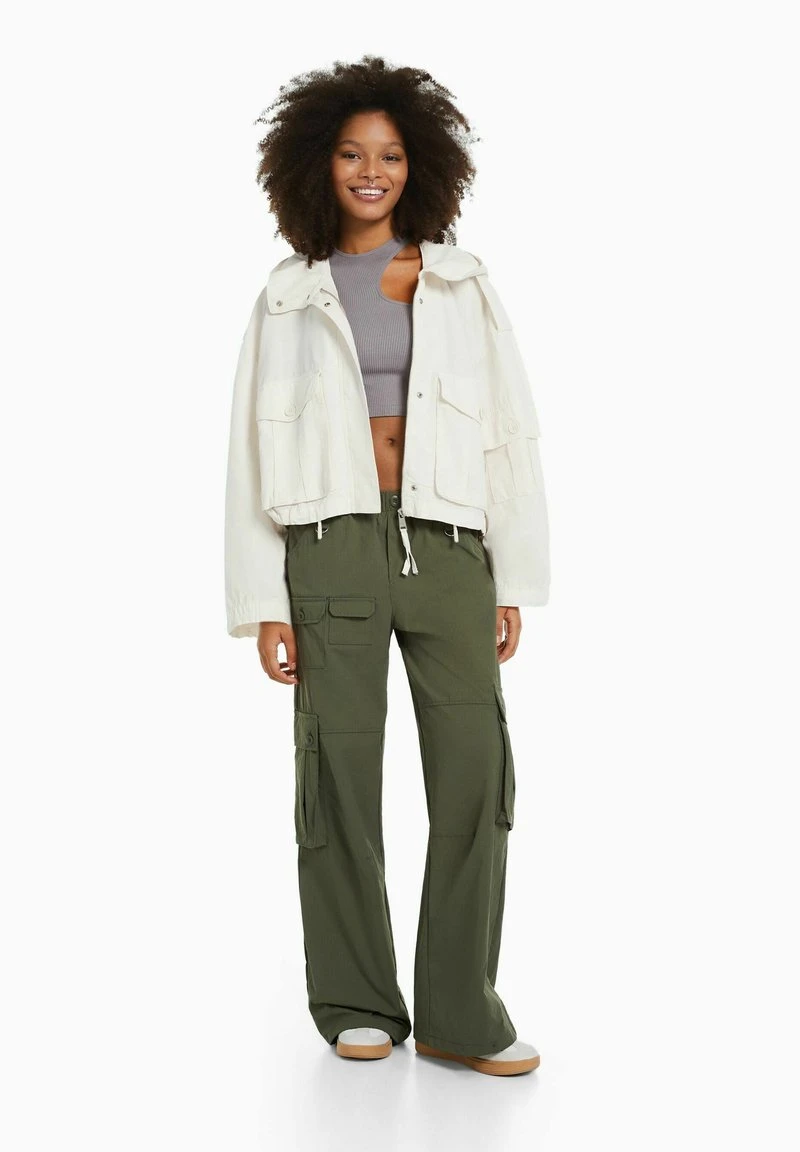 BERSHKA WITH POCKETS – HOODED – Leichte Jacke – White