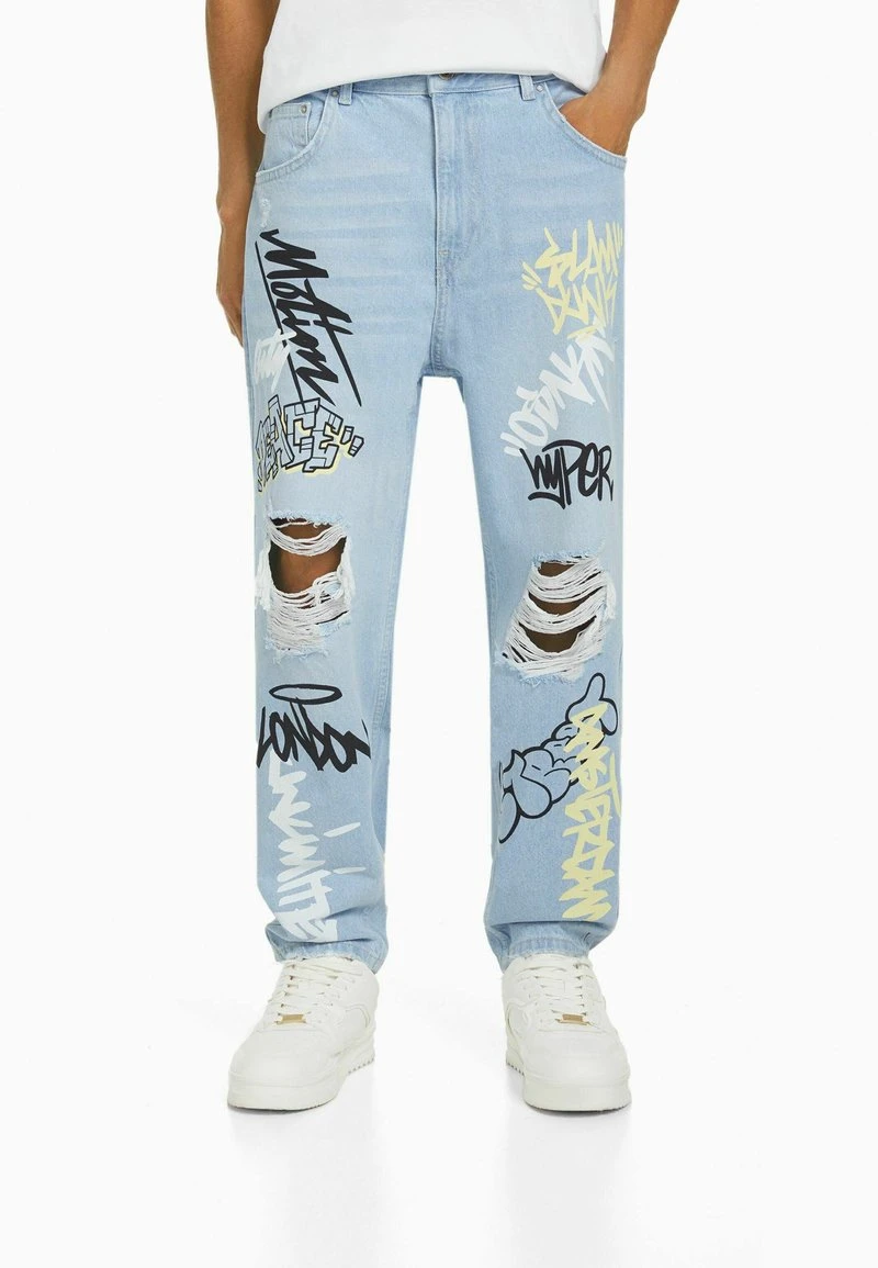 BERSHKA WITH PRINT – Jeans Straight Leg – Light Blue