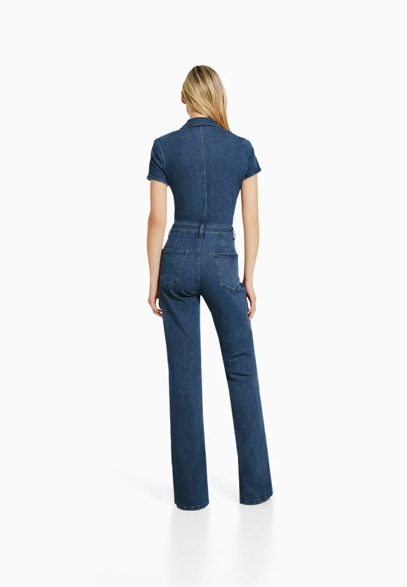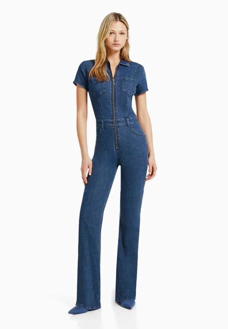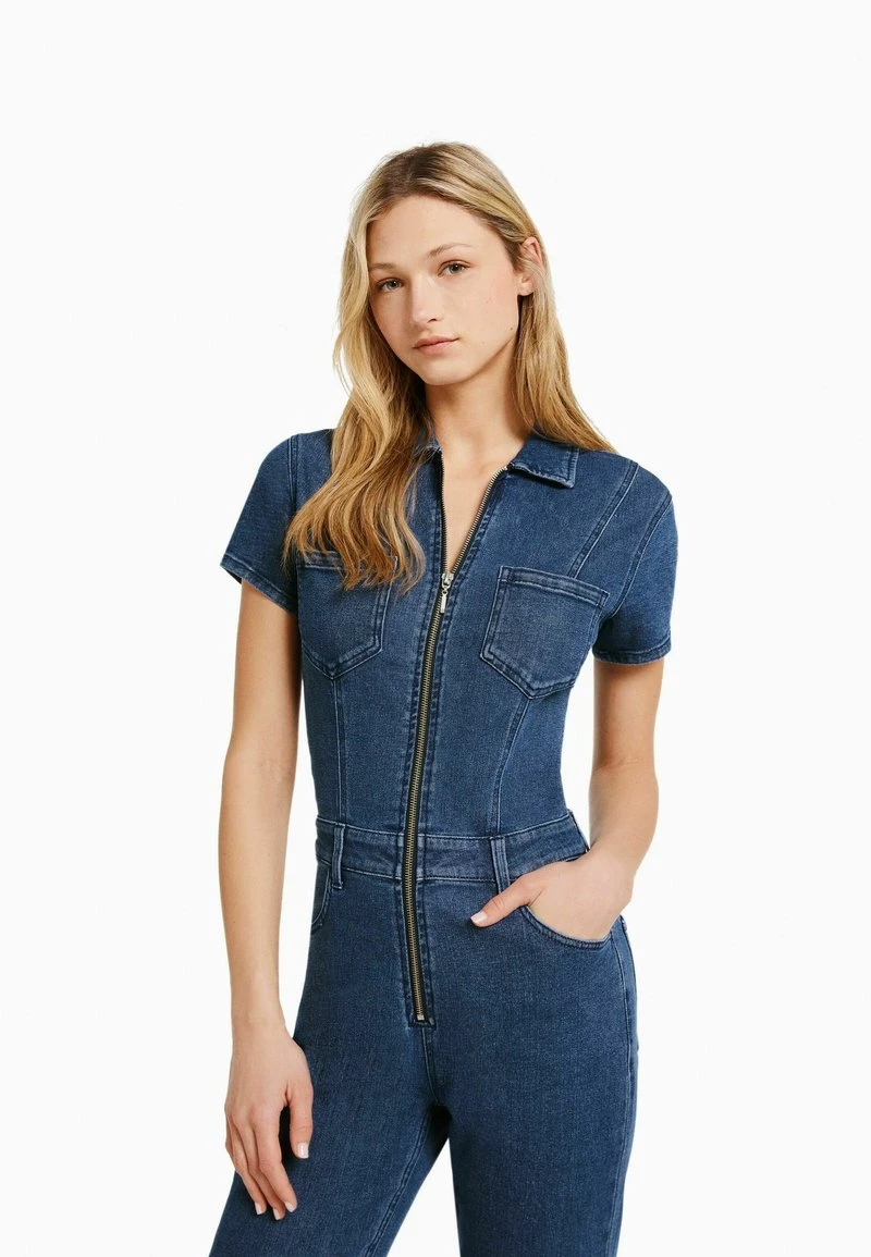 BERSHKA WITH SHORT SLEEVES AND ZIP – Jumpsuit – Dark Blue